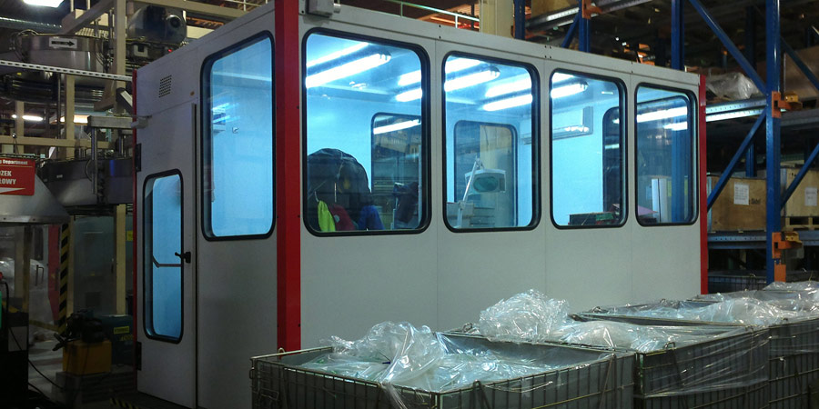 Nasze rozwiązanie znacząco podnosi komfort pracy personelu i znakomicie sprawdziło się zarówno w halach chłodni przemysłowych jak i w halach w których panuje wysoka temperatura lub podwyższony poziom hałasu. Opisywana, pierwsza taka kabina powstała dla jednego z zakładów rozlewającego napój Coca-Cola.