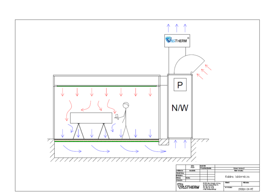 I tak, w dużym skrócie doszliśmy do rozwiązania wzorcowego, czyli zamkniętej kabiny lakierniczej z pionowym ruchem powietrza z góry na dół.