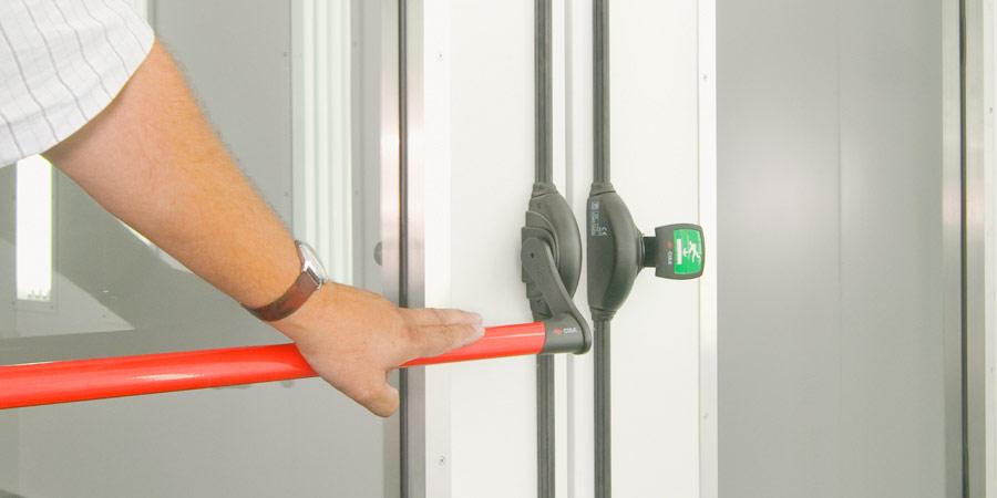 Również drzwi serwisowe są produkcji ASTHERM - ich wielkość, ilość i rozmieszczenie określa stosowna norma - zawsze wyposażone są w atestowane zamki 'anty-paniczne' oraz w bezpieczne szyby. Szyby, w zależności od wyboru Klienta - wykonywane są ze szkła hartowanego lub laminowanego - klasy 44.1.