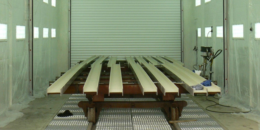 W kabinach lakierniczych dla przemysłu metalowego stosowany jest najczęściej pionowy ruch powietrza. Nawiew ciepłego, czystego powietrza zawsze odbywa się przez sufit filtracyjny, dzięki temu lakiernik oddycha czystym powietrzem. Sufit filtracyjny umieszczony jest bezpośrednio nad stanowiskiem lakierowania. Wyciąg zapylonego powietrza odbywa się najczęściej przez kraty podłogowe lub boczne kanały wyciągowe, co jest pewną alternatywą jeżeli nie można wykonać fosy betonowej. Zdarzają się również konstrukcje z krzyżowym przepływem powietrza. Każde z tych rozwiązań ma swoje zalety i wady, ale o wyborze rozwiązania docelowego decydujemy wspólnie z Inwestorem po określeniu rodzaju i ilości malowań oraz analizie dodatkowych czynników.