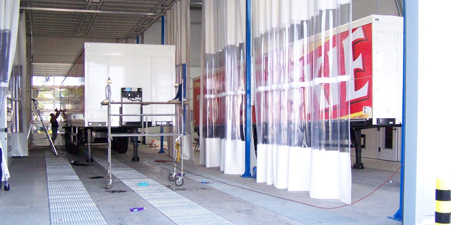 Dla zachowania czystości na sąsiadujących stanowiskach pracy oferujemy instalację rozsuwanych kurtyn. Ich ilość i wielkość dopasowana jest do potrzeb konkretnego miejsca.